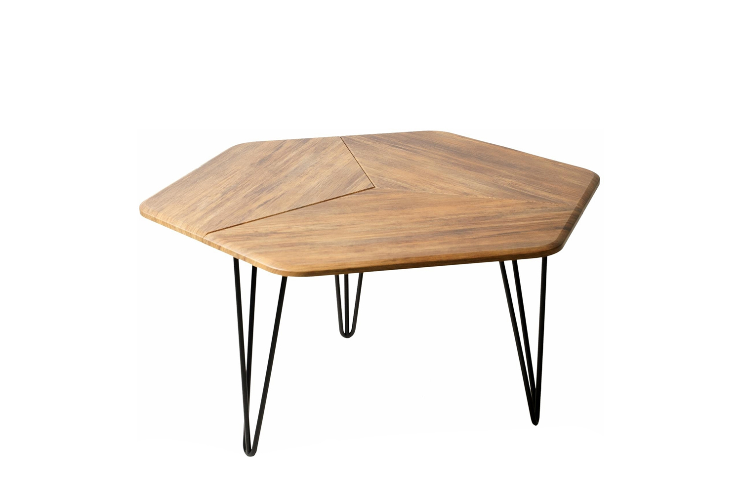 Полноценный и гармонично оформленный интерьер складывается из множества грамотно подобранных компонентов, дополняющих друг друга. Так, при оформлении гостиной, незаменимым предметом интерьера будет конечно же журнальный стол. Журнальный столик «Олдин» выполнен в стиле лофт — простом и современном. Столешница в виде геометрической фигуры шестигранника и опоры, изготовленные из металла, придают данной модели изящество и легкость.